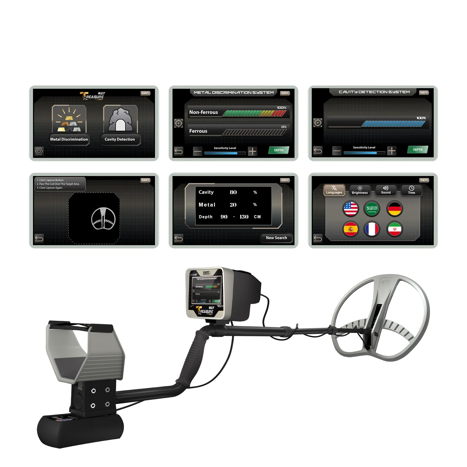 TITAN X13 operates with 11 advanced systems designed to detect gold, treasures, precious metals, cavities, caves, and ancient relics — making it the ultimate choice for both professional researchers and ambitious explorers.