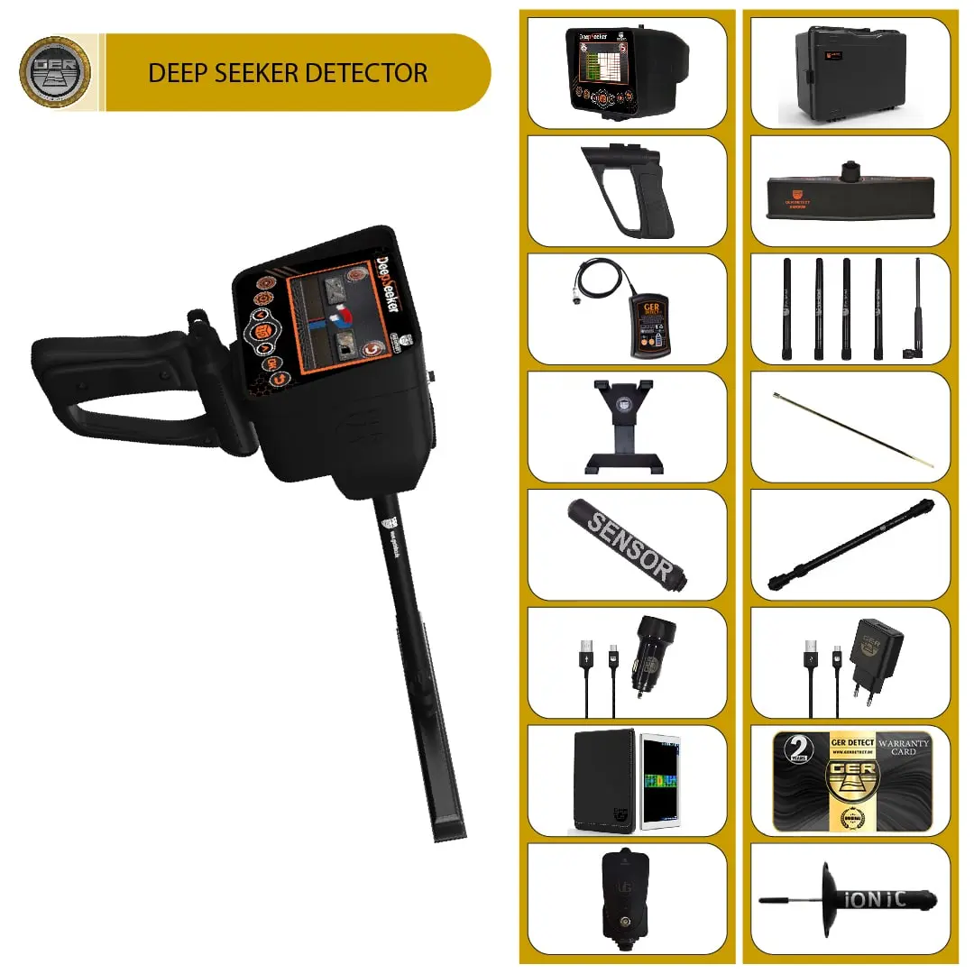 The DEEP SEEKER device is a comprehensive exploration station with five innovative systems in one device, capable of detecting gold, buried treasures, voids, ancient artifacts, precious metals, and diamonds underground