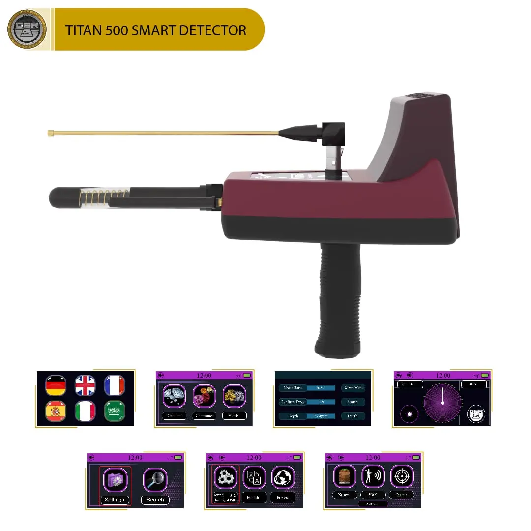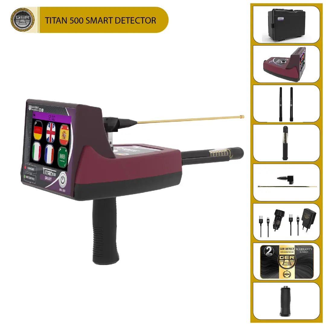The TITAN 500 SMART device is small, portable, and easy to use, with multiple systems for searching for hidden gold, raw gold, precious metals, treasures, diamonds, gemstones, and underground wealth